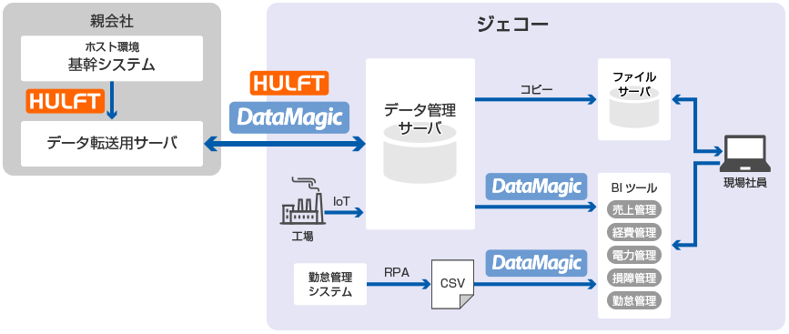 親会社のホスト環境とのデータ転送にHULFTを利用するため、知識を深めるべく参加したセミナーで紹介されたのがDataMagicだった。「DataMagicはホストの考え方に近く、簡単に固定長のデータを分割できました。しかも仕様書が自動で生成されるため、引継ぎも容易です。実際に使ってみると、精度が高く、処理も早い。大量のデータを日々加工し続けるためにも、スピーディに処理できることは大きなメリットであり、これで大丈夫だと確信しました(塩田氏)」また、データが対象フォルダに保存されたら処理を実行するといったトリガー設定も、HULFTでチェックボックスに設定するだけで完了する。データのマージや項目結合も簡単な設定で、完璧に実現できたという。