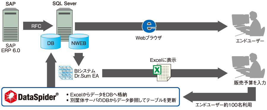 DataSpiderは、さまざまなシステムのデータベースを1つのスクリプトの中で共存させられるだけでなく、Excelやメールとの連携も一本化できるので、ユーザーの作業も組み入れて開発することができます。従来、外注していた開発案件も、 DataSpiderを使えば内製化できるという点は、大きなメリットですね。