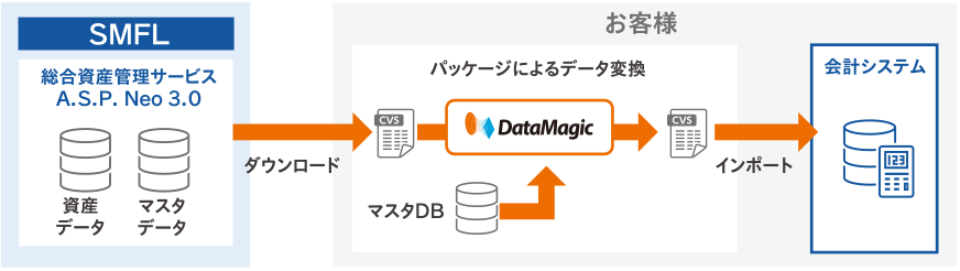 平井氏は当初、自ら調査しHULFTのデータ連携ソリューション「DataSpider Servista」の存在を知った。このデータ連携プラットフォームをパッケージとしてASPサーバ側に導入し、固定資産等のデータを一括して変換処理すれば、顧客と自社の課題の多くを同時に解決できる、と感じたという。ただ、その方法だと顧客にサーバ購入という追加の負担をかけることになり“システム購入不要”というA.S.P.Neo3.0の長所を消してしまう、という問題があった。そこで、さらに検討を重ねて達した最適な結論が、同じくセゾン情報システムズ(現セゾンテクノロジー)が提供するHULFTのデータ加工・変換ツール「DataMagic」だった。平井氏とともにプロジェクトに携わる、ITビジネス推進部副部長の大門千亜子氏はいう。