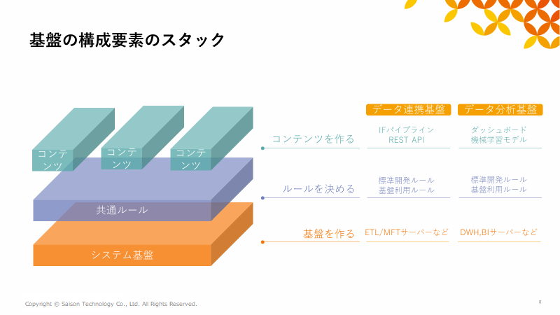 コンテンツとそのコンテンツが載る土台を分離して、コンテンツを載せたいと思ったときにすぐ実現できる状態にする、そのためには基盤があることが重要なのです。
