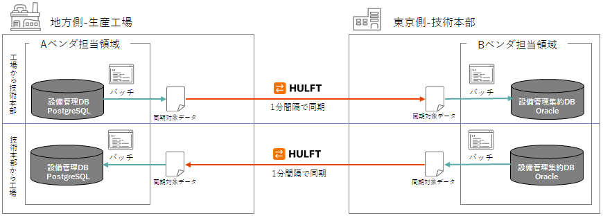 ある案件での出来事でした。依頼主は東京に技術本部がある製造業のお客様で、遠方に生産工場があります。そのお客様は設備管理の効率化を狙っており、各工場の保全記録を東京の技術本部に収集し、分析、そして各工場へフィードバックすることで設備の稼働率向上と現場の作業負荷低減(ムリ・ムダ・ムラ解消)を目論んでおりました。およそ1年の構想期間を経て、東京側の設備管理DBと生産工場側の設備管理DBをそれぞれ改修し、互いに同期させることで、リアルタイムに設備管理状況を吸い上げることが決まり、各システムベンダがすでにアプリケーションとDBの改修に取り組んでおりました。