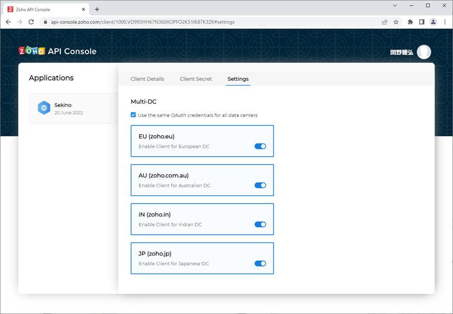 まずは、Zoho CRMから連携に必要な情報を取得していきます。