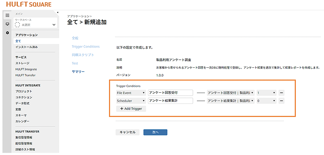 HULFT Squareアプリケーションとは、あらかじめ作成されたデータ連携スクリプトを再利用しやすいようにテンプレートとしてパッケージ化して提供する機能です。