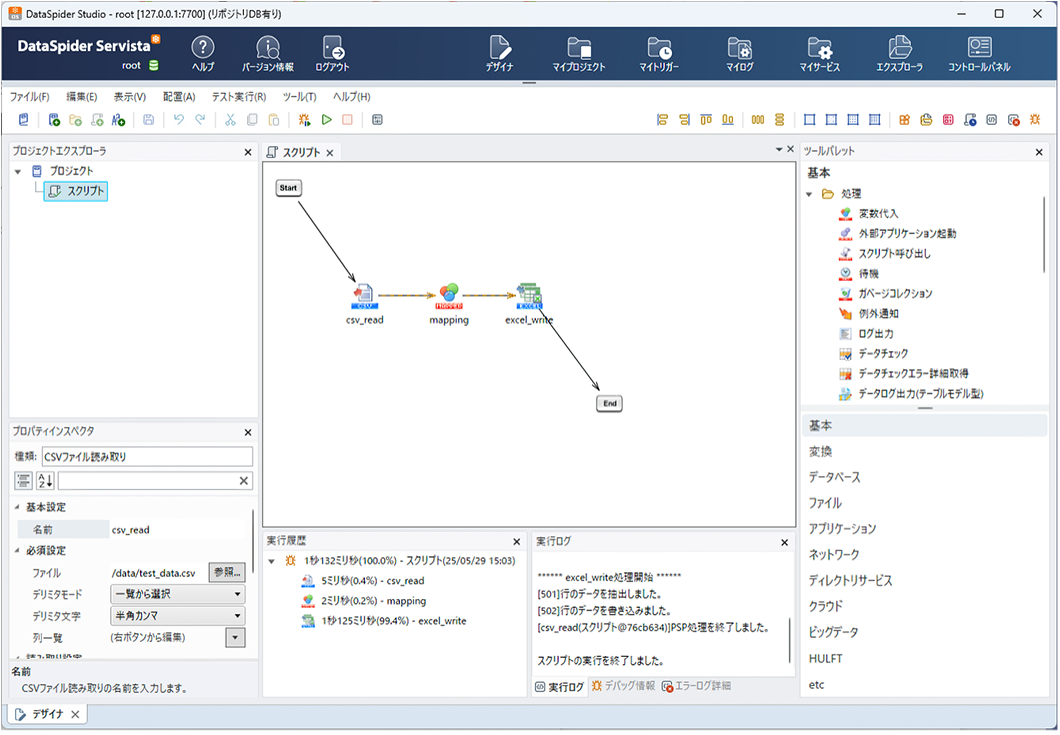 「DataSpider Servista 5」の開発環境(DataSpider Studio)画面イメージ