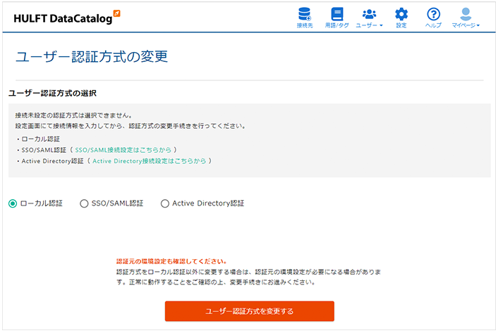 シングルサインオンに対応したことで、HULFT DataCatalog を含む複数サービスのアカウントを1つのアカウントで管理できるようになります。 - Active Directory 連携