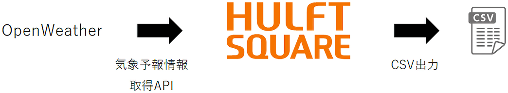 APIの取得結果はJSON(XML)形式ですが、二次加工しやすいようにHULFT SquareがCSV形式に変換した上で出力します。