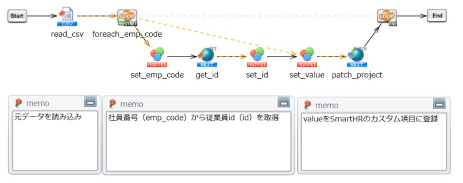 「経験データ登録用CSV作成スクリプト」で作成したCSVファイルを読み込み、SmartHRに登録します。