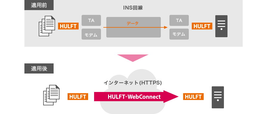 INS回線網が2025年を目処にインターネット回線網へ移行されます。(2025年問題)「HULFT-WebConnect」は、インターネット回線へリプレース後のデータ転送に有効にご活用いただけます。