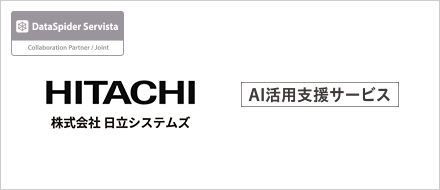 データ利活用のテーマ設定から実運用支援までトータルなサポートを提供する日立システムズの「AI 活用支援サービス」と「DataSpider Servista」を組み合わせることで、データ利活用の中で特に大きな工数がかかると言われているデータ連携·加工段階で欲しいデータを自動的に取りこむことが可能となり、データ整形業務の効率化を実現します。
