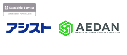 「AEDANは、ビジネスロジックをコーディングレスで掌るルールベースAI 「Progress Corticon」と、様々なデータやアプリケーションをこちらもコーディングレスで自由に「つなぐ」ことができるデータ連携ツール「DataSpider Servista」で構成されます。