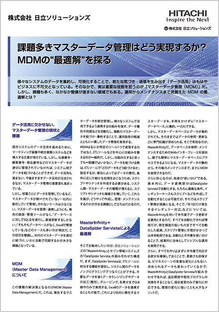 - 企業の重要な資産であるマスタデータのメンテナンス支援ツールであるマスターインフィニティとDataSpider Servistaの組み合わせにより、より簡単に”“より安全に”“より便利に”保守体制を構築することができます。