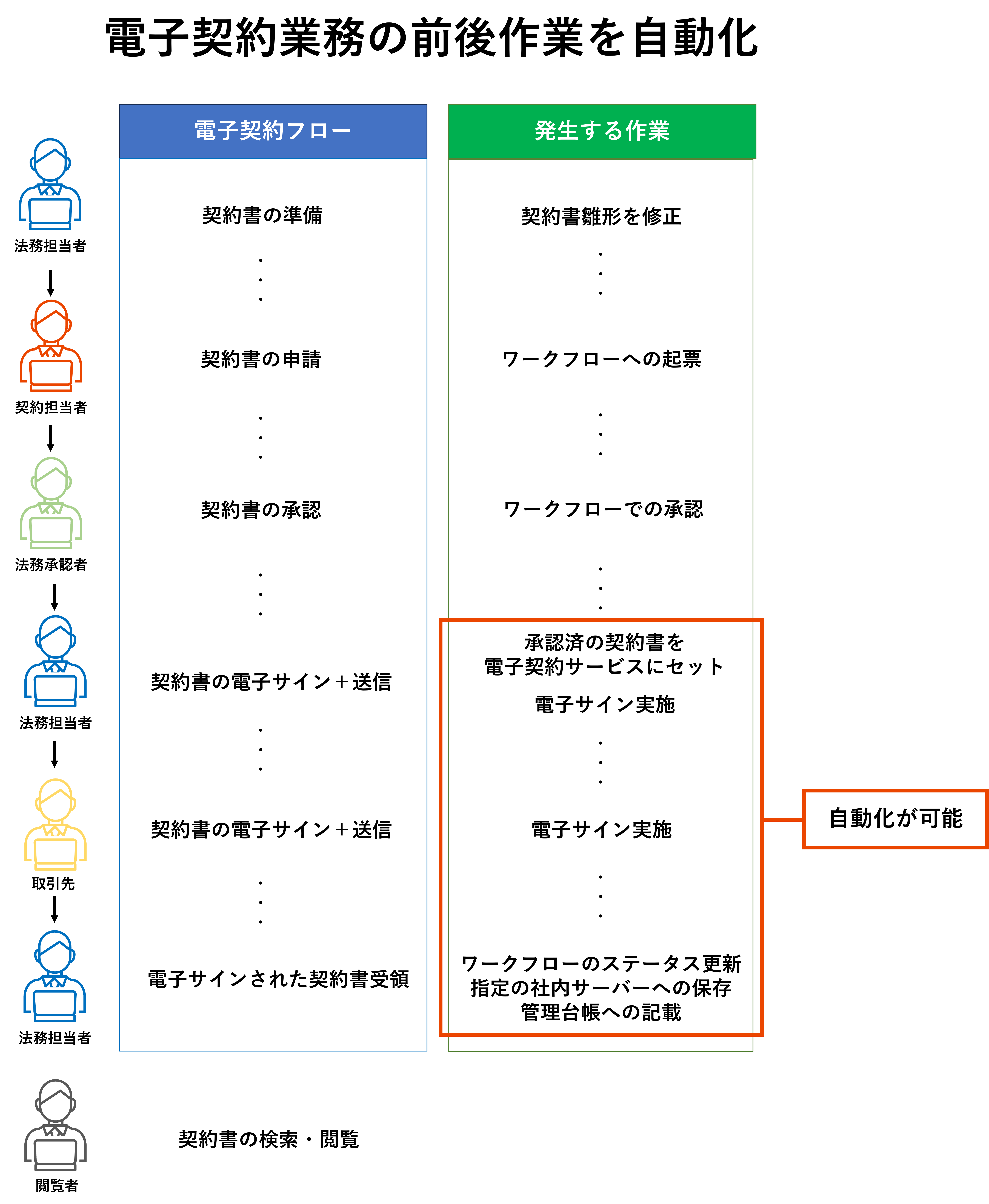 しかし便利になったその裏では、法務部門及び契約担当者には以下のような煩雑な業務が残っているという声が多くあります。