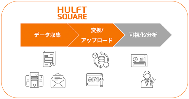特に負担が大きい、データ収集~分類分け~テンプレート転記の部分をクラウド型データ連携プラットフォームのHULFT Squareに置き換えることで、サステナビリティ担当者の作業を効率化できます。