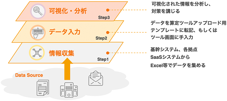 しかし算定ツールへデータ投入する準備段階で、課題があります。