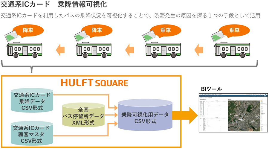 本記事では、交通系ICカードに蓄積されたバスの乗降情報をもとに、利用実態を「見える化」することで、企業の通勤施策やバス運行計画の改善に活用する仕組みをご紹介します。そしてその基盤となるのが、データ連携を支えるiPaaS「HULFT Square」です。バス利用の最適化を通じて、持続可能な都市交通の実現を目指す取り組みを、ぜひご覧ください。
