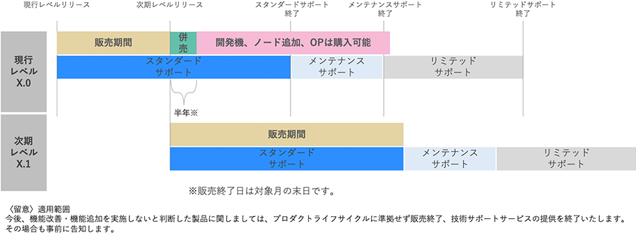 開発機やノードの追加への製品導入やオプションの追加は、該当レベルのメンテナンスサポート終了まで継続し販売します。